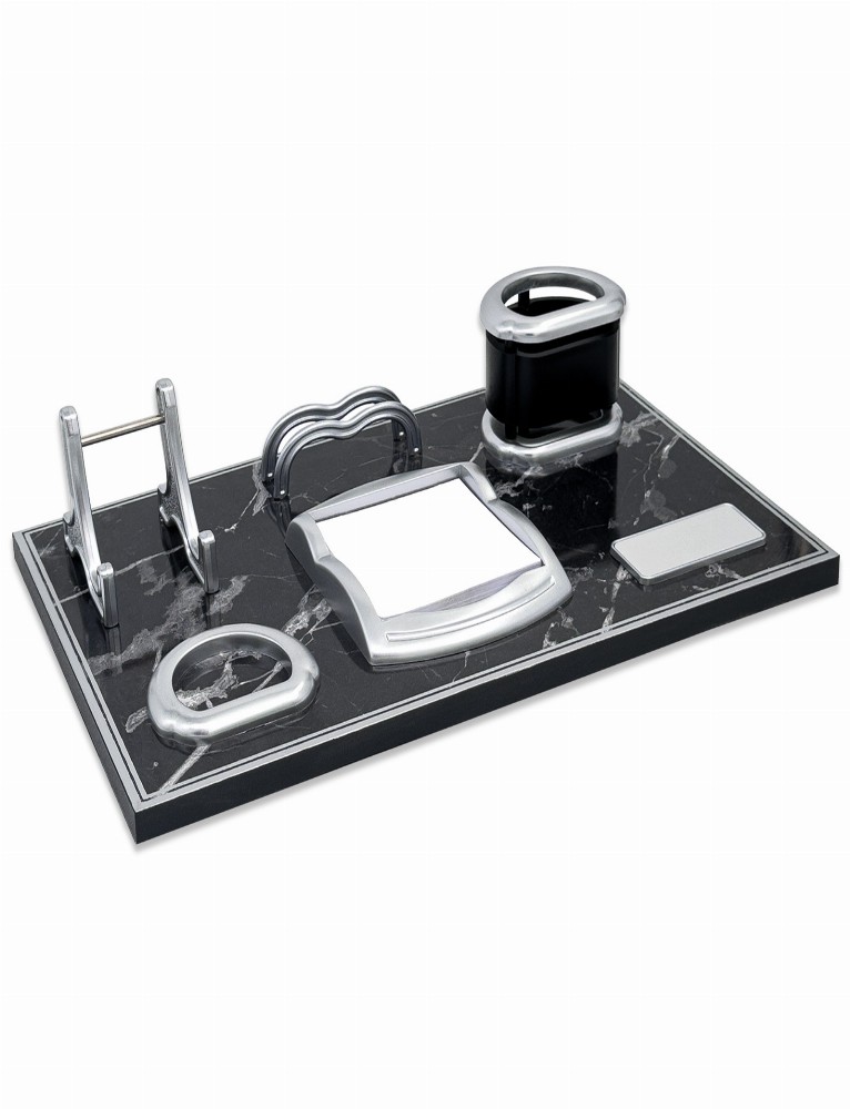 ASİL SİYAH-GÜMÜŞ MERMER DESENLİ MASA SETİ