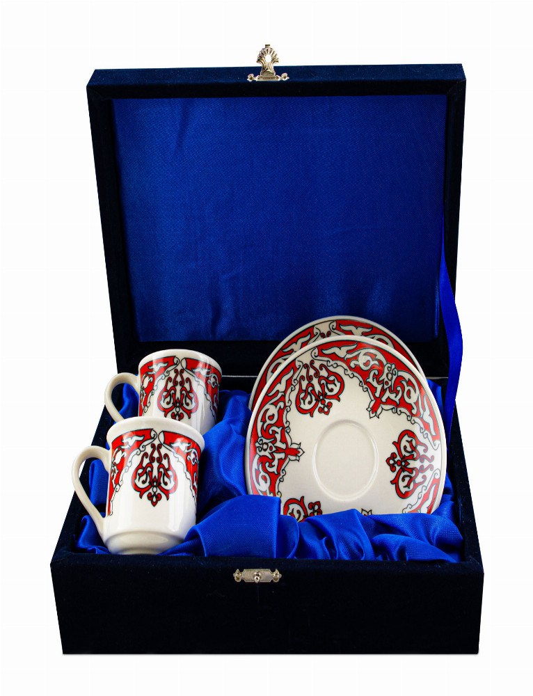 *2li Porselen Kahve Fincanı *Kadife Kutu *Baskı: Fırın, Metal Etiket
